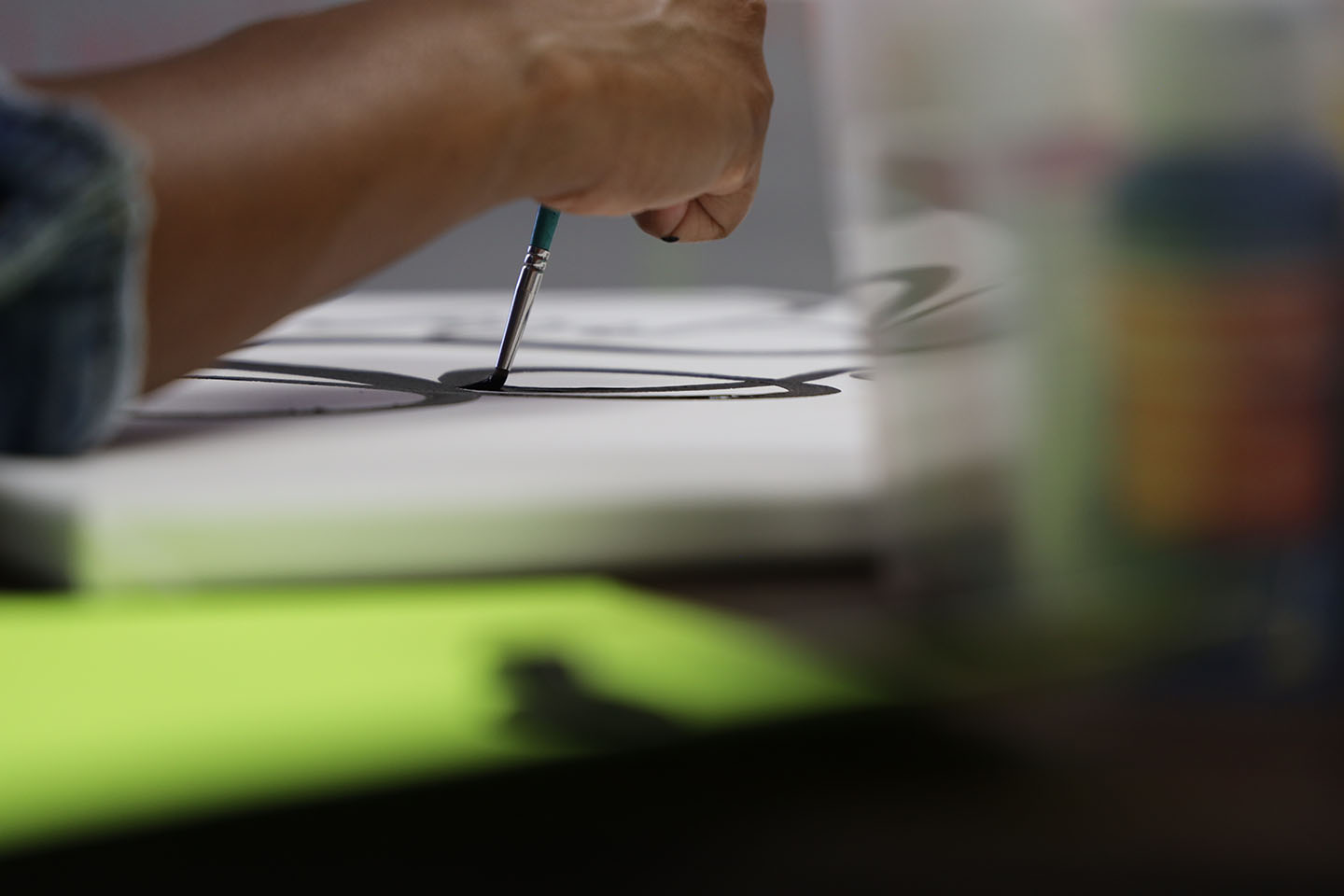 Jackie Bobo works on a piece at One Columbia’s Garage Studio. Photo by Colin Elam/The Carolina Reporter