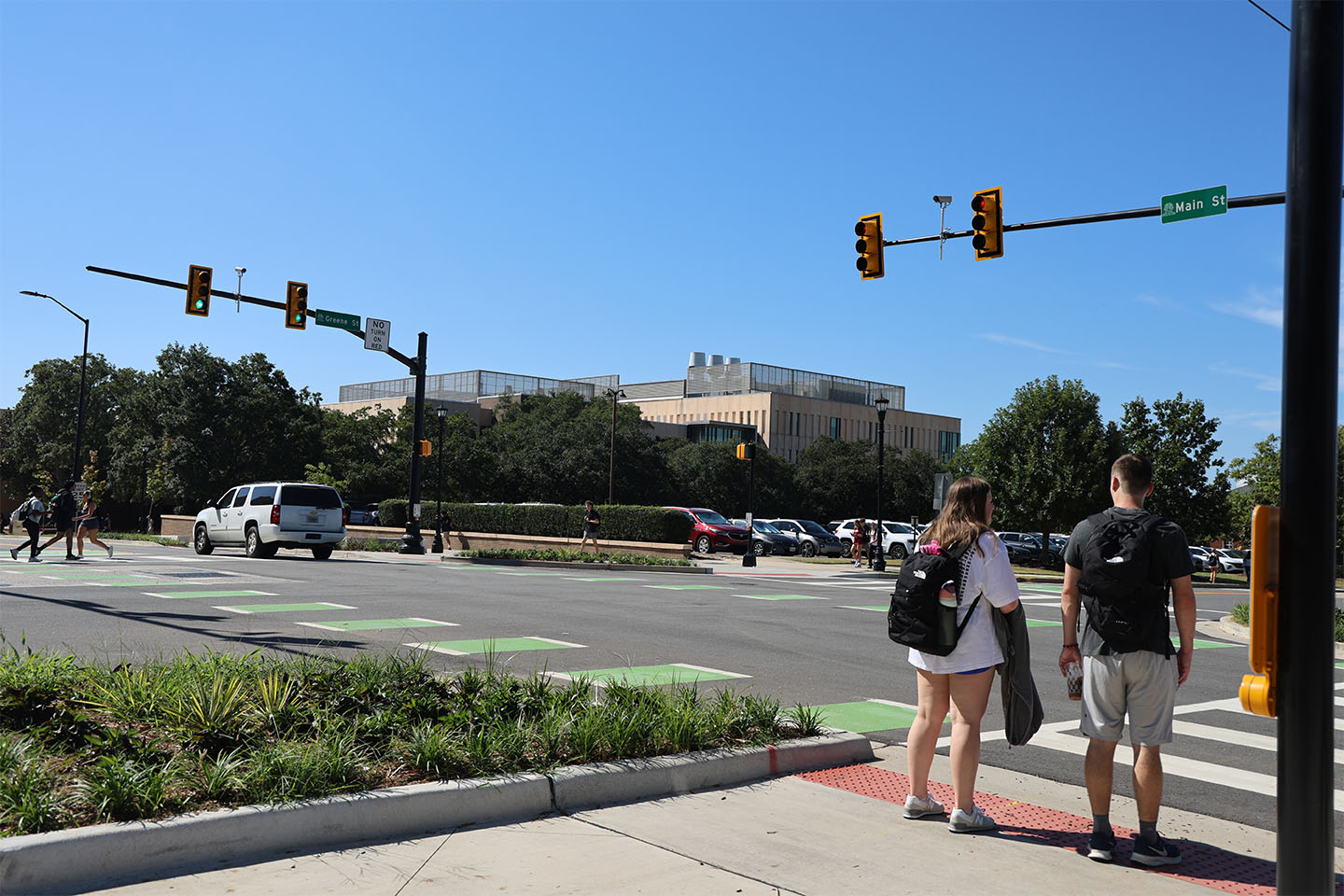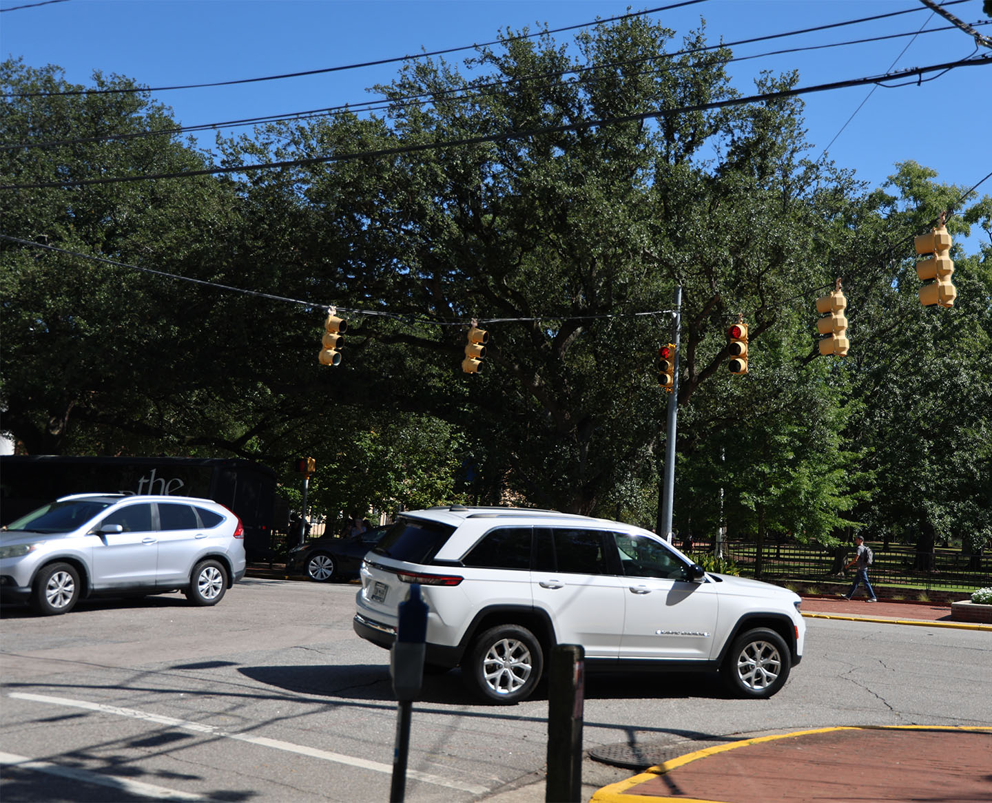 Students on foot have the right of way before the cars are able to turn at a green light. Photo by Lauren Guest/Carolina Reporter