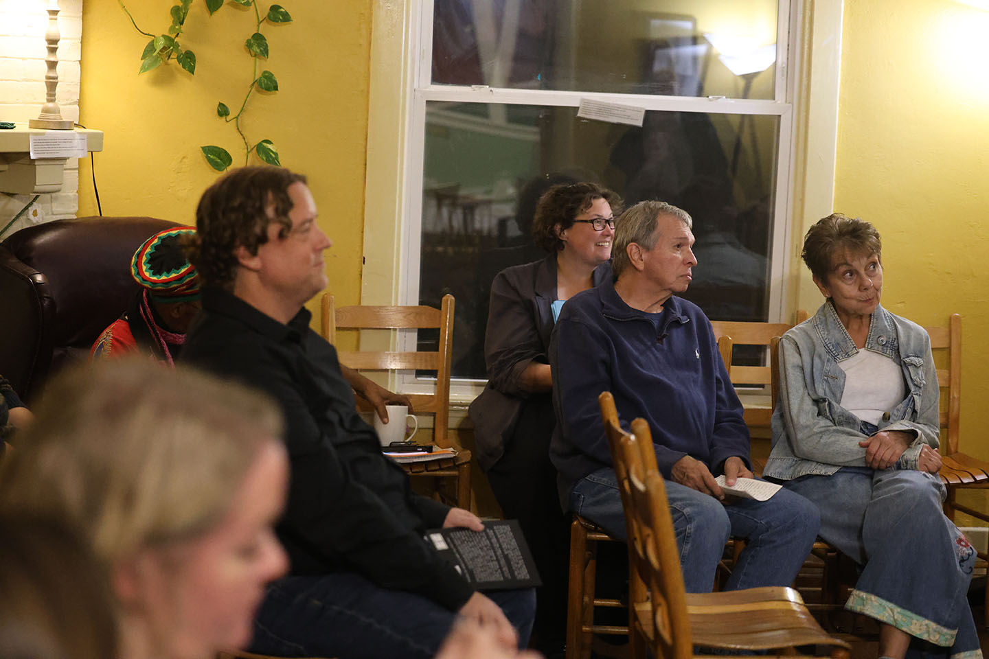 The audience – most of whom will share themselves – sit rapt for poetic and musical performances. Photo by Sydney Lewis/Carolina Reporter