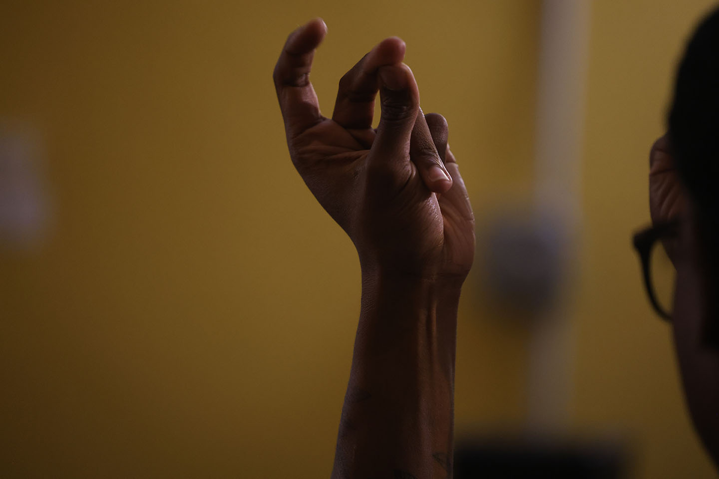 Xavier Khalil snaps his fingers to celebrate another performer. Photo by Sydney Lewis/Carolina Reporter