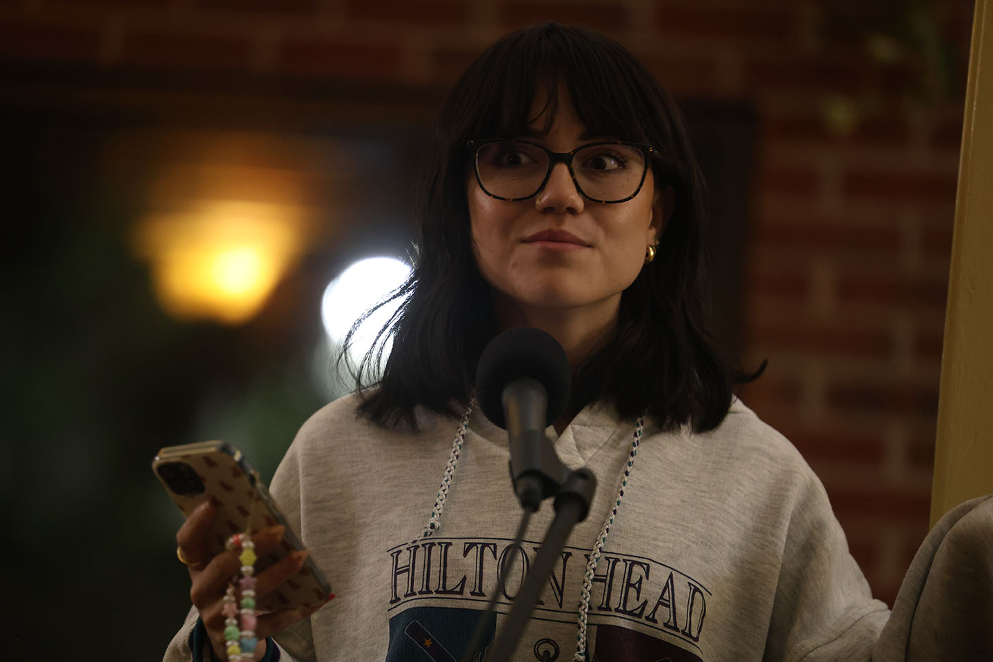 USC junior Audrey Miller shares a longform poem with the audience on her first visit to Mind Gravy. Photo by Sydney Lewis/Carolina Reporter