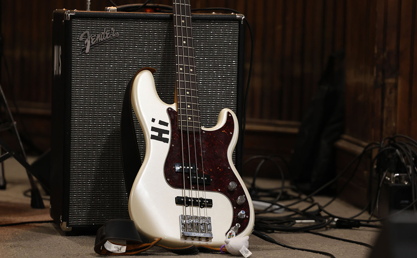 Band members actually play their own instruments on the streaming show in which they play a band. The instruments adds a more personal element to each character, like the sticker on Jesse Golliher’s guitar. Photo by Ansley Peterson/Carolina Reporter