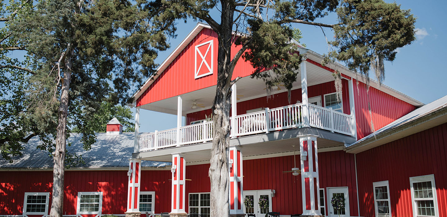 A large red barn is immediately visible when entering the Big Red Barn Retreat property. Photo courtesy of Big Red Barn Retreat/Carolina Reporter