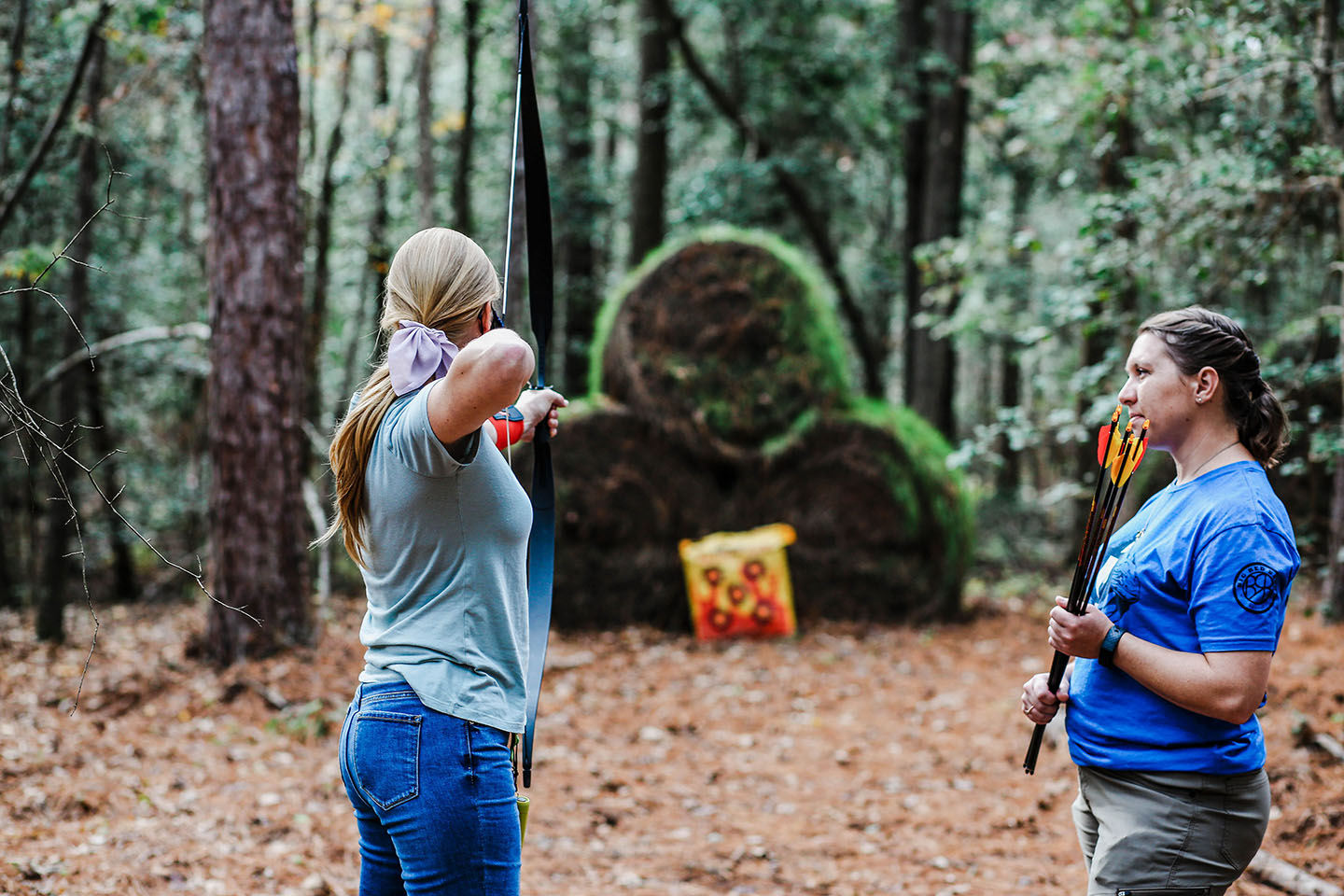 A program participant engages in archery, one of several activities available during the residential program. Photo courtesy of Big Red Barn Retreat/Carolina Reporter