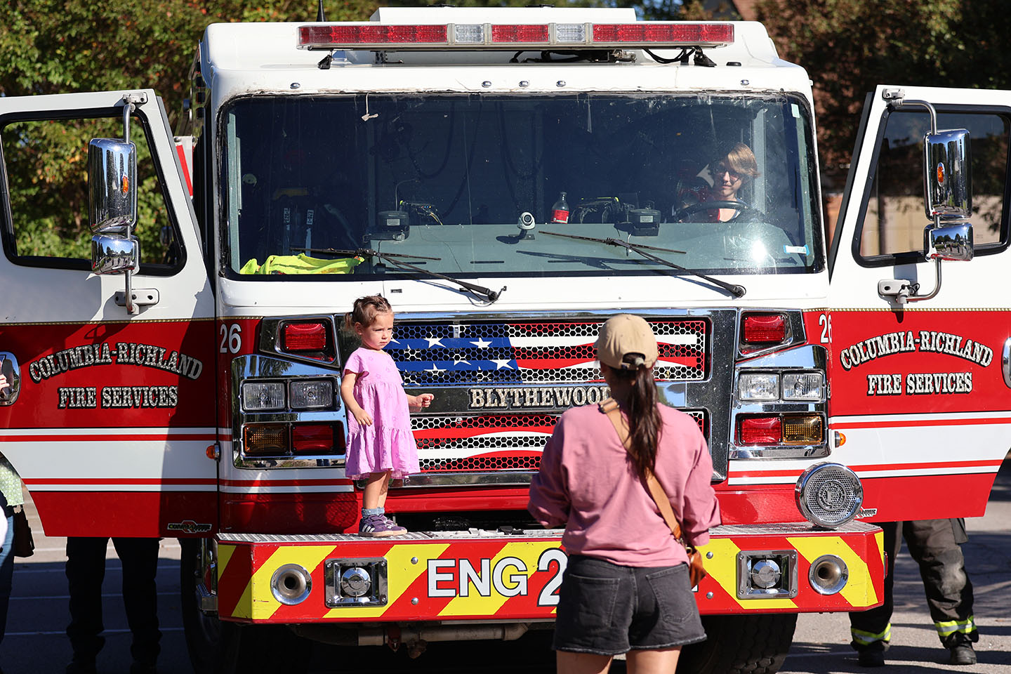Firefighters offered tours of their trucks while showcasing their gear and giving safety discussions about checking smoke alarms, owning working fire extinguishers and creating a fire escape plan.