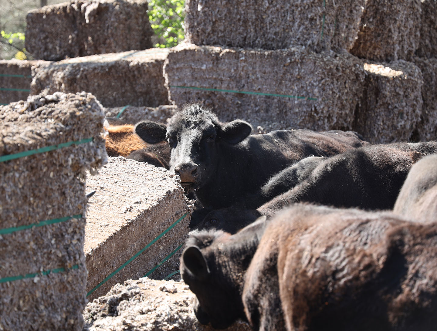 One of Clayborne’s cows eats hay with the herd. Photo by Camille Molten/The Carolina Reporter