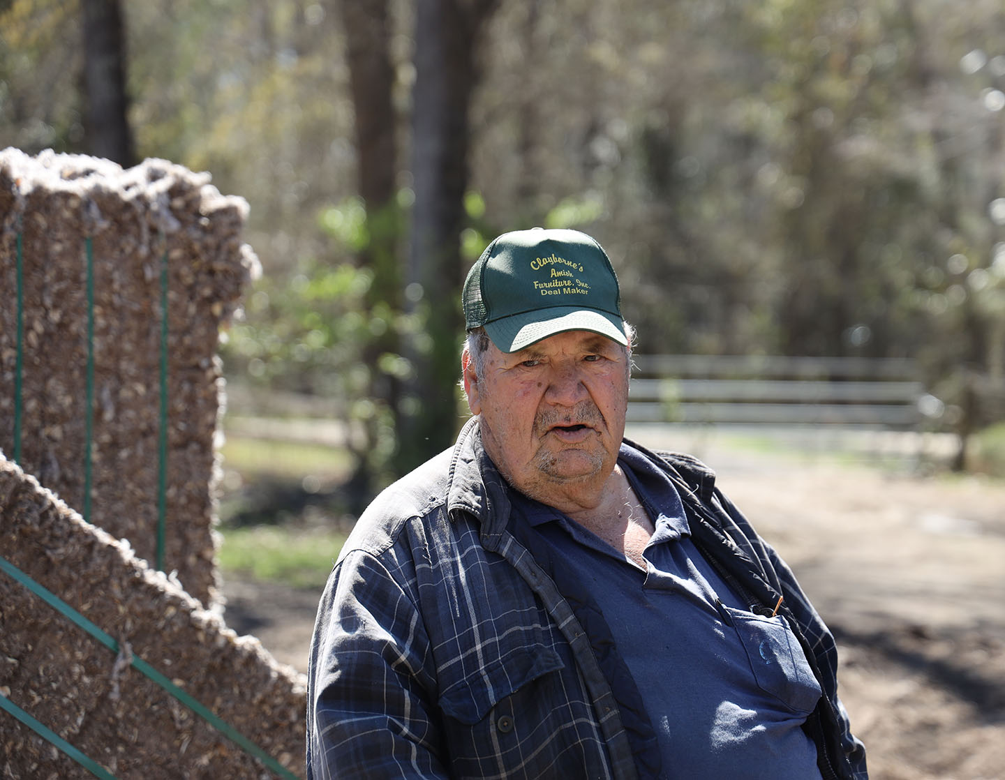 Roger Clayborne sits on a hay bale in Lugoff and watches his cows. Photo by Camille Molten/The Carolina Reporter