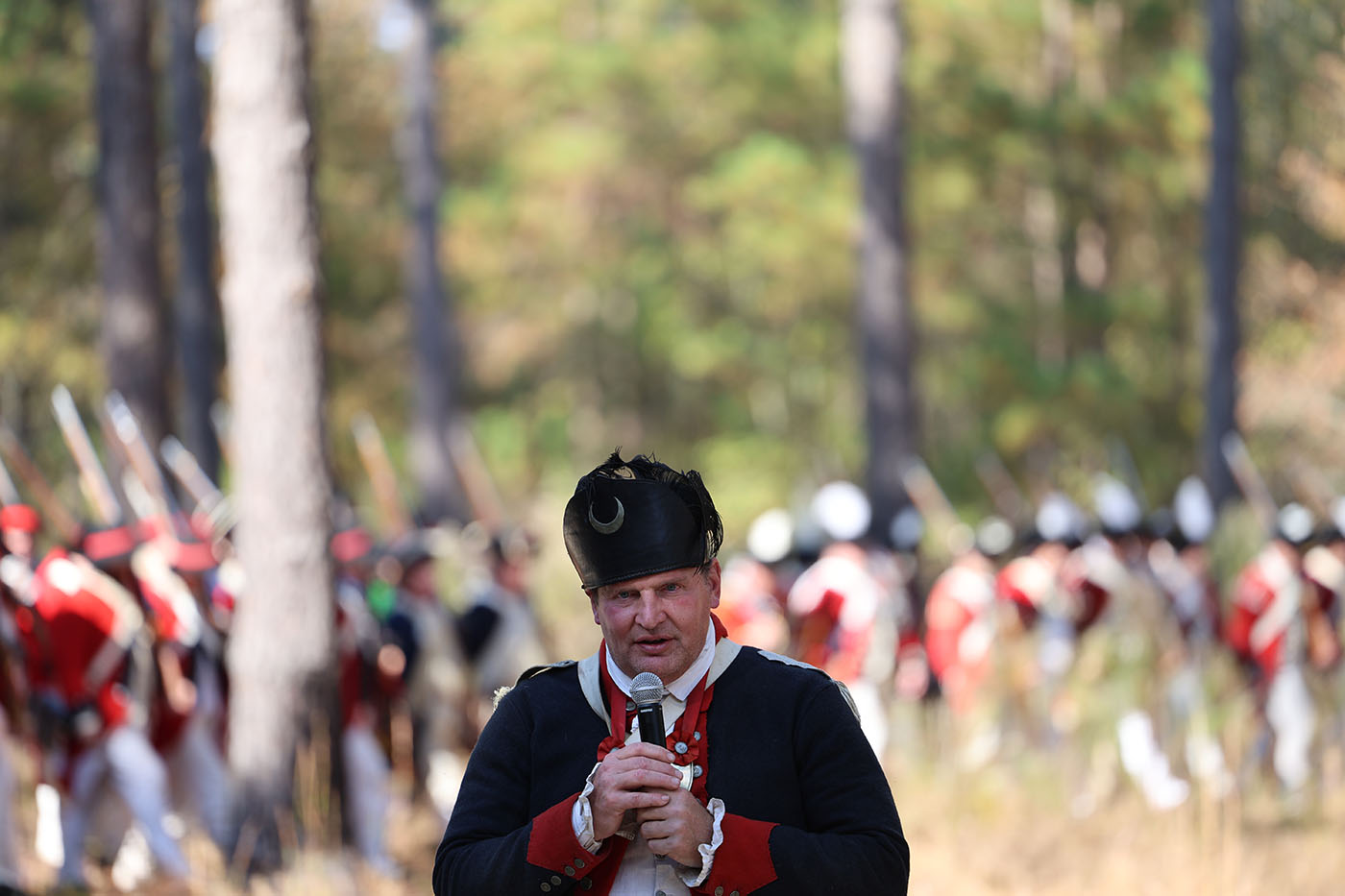 Southern Campaign board member Erick Nason, a former Army Ranger who holds a doctorate in education and has been reenacting since 1987, serves as re-enactor coordinator. Nason navigates months of logistics and feedback from previous years to organize the battles. And he narrates them as they happen.