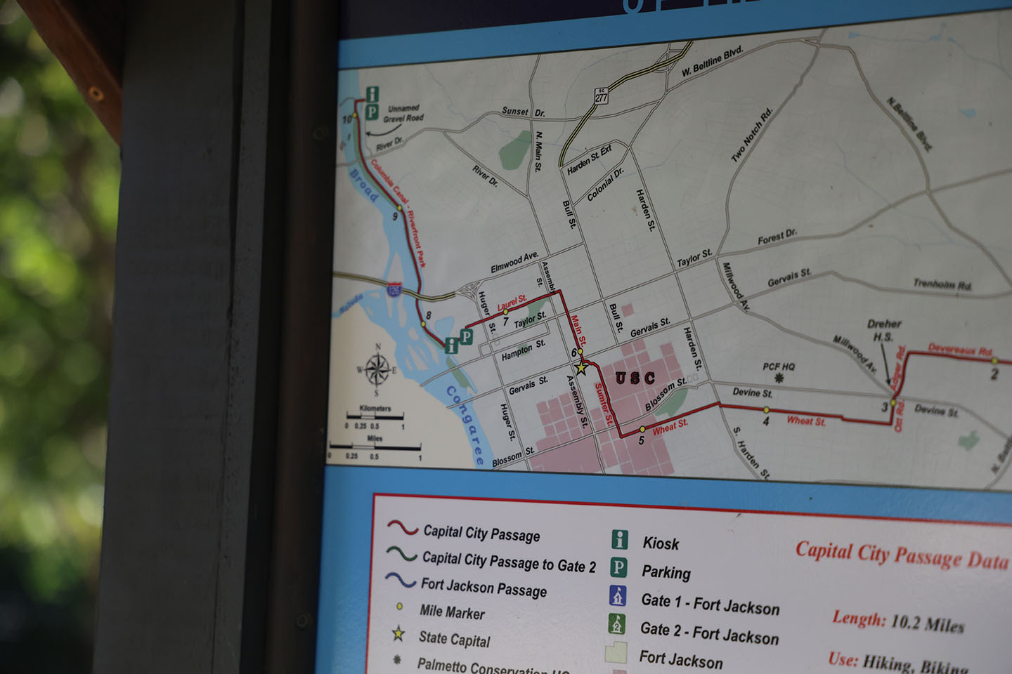 This map shows walking paths downtown, not far from the river. Photo by Abagael Strating/Carolina Reporter