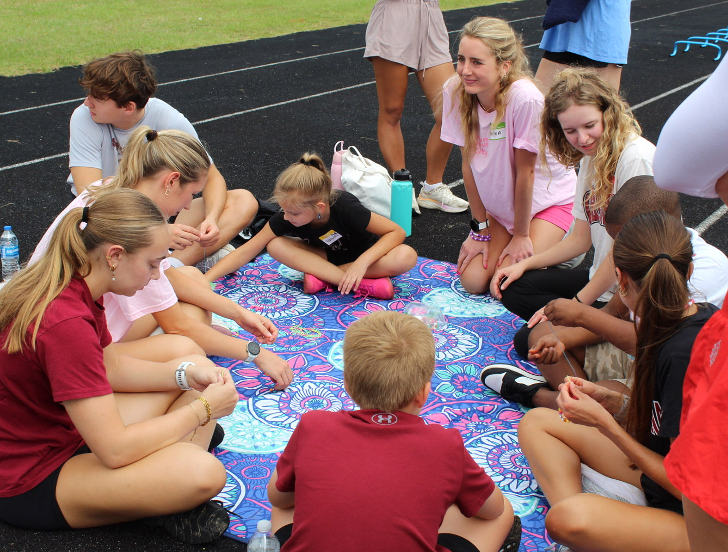 Members sit together for a team-bonding, bracelet-making activity. Photo courtesy of Caitlin Gemmill/The Carolina Reporter