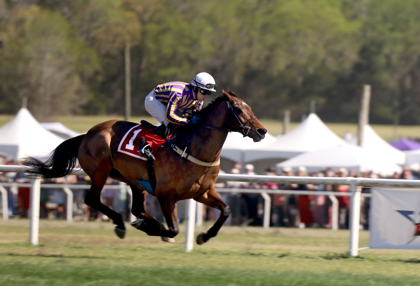 Merry Maker was the winner of the last race of the day, The Camden Plate Training Flat. Photo by Giovanni Cusatis/The Carolina Reporter