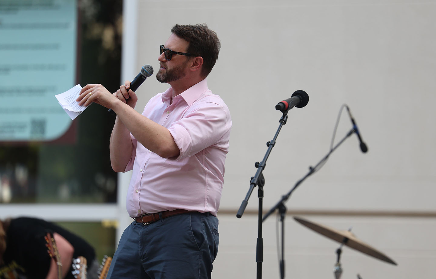 Koger Center Director Nate Terracio thanks the crowd for attending.