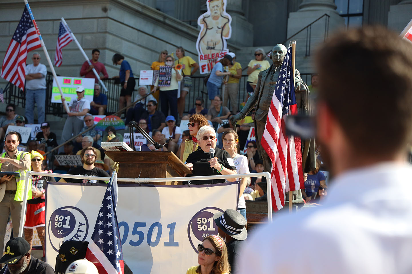 Residents from across South Carolina gathered on Saturday at the state capitol to make Oct. 18 the largest protest yet of the Donald Trump administration.