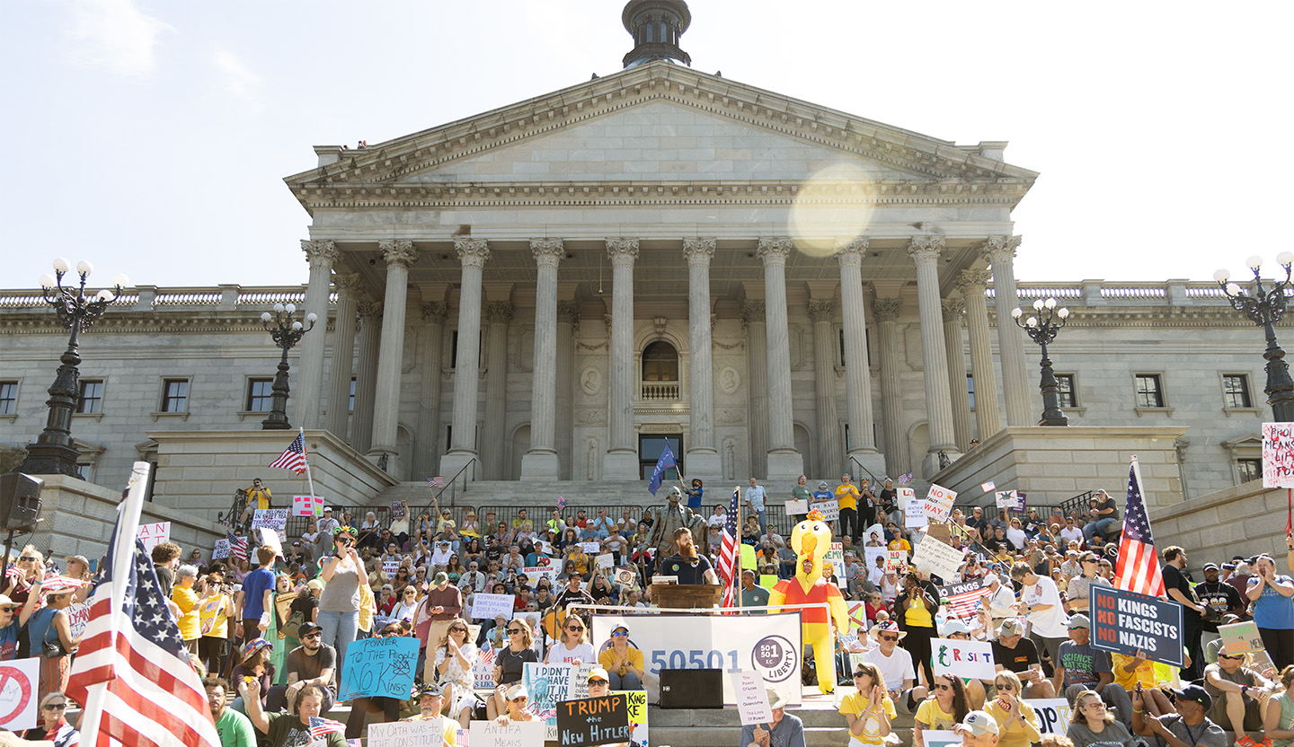 South Carolina’s “No Kings” protest left the Statehouse lawn for the first time since anti-Trump protests began in February.
