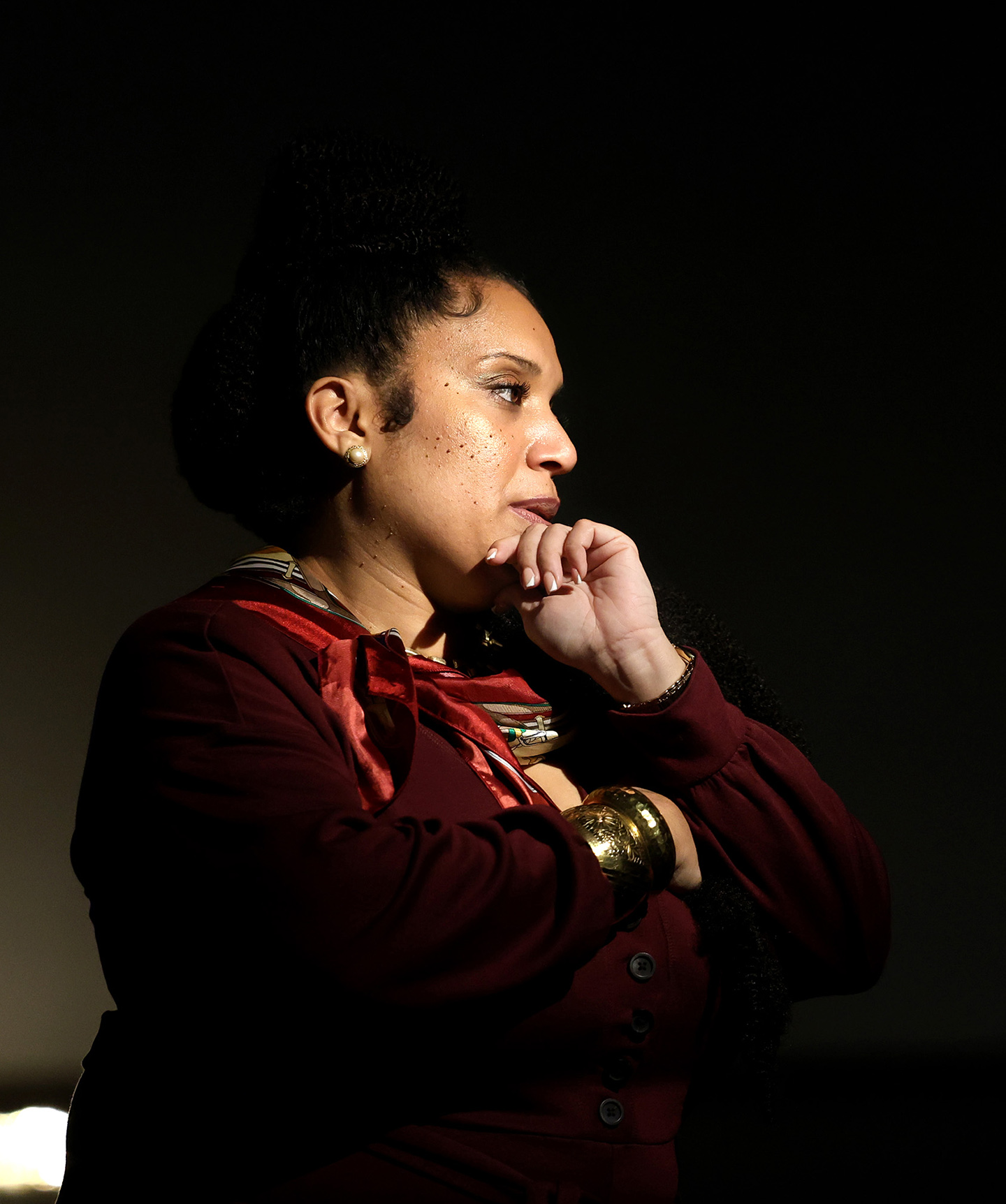 Cherelle Guyton stays to chat with audience members. Photo by Lacy Latham/The Carolina Reporter