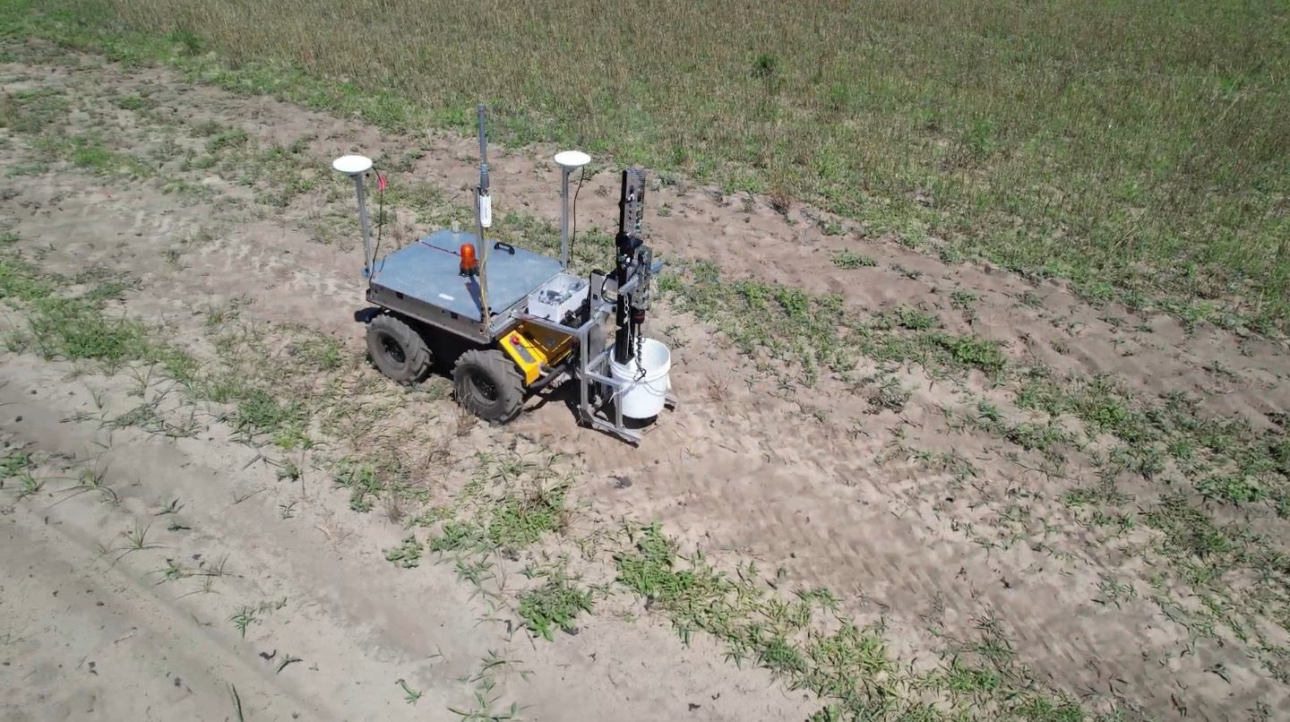 An autonomous soil sampling robot monitors soil health at the Olar Research Farm. (Photo Provided by Joe Mari Maja/Carolina News & Reporter)