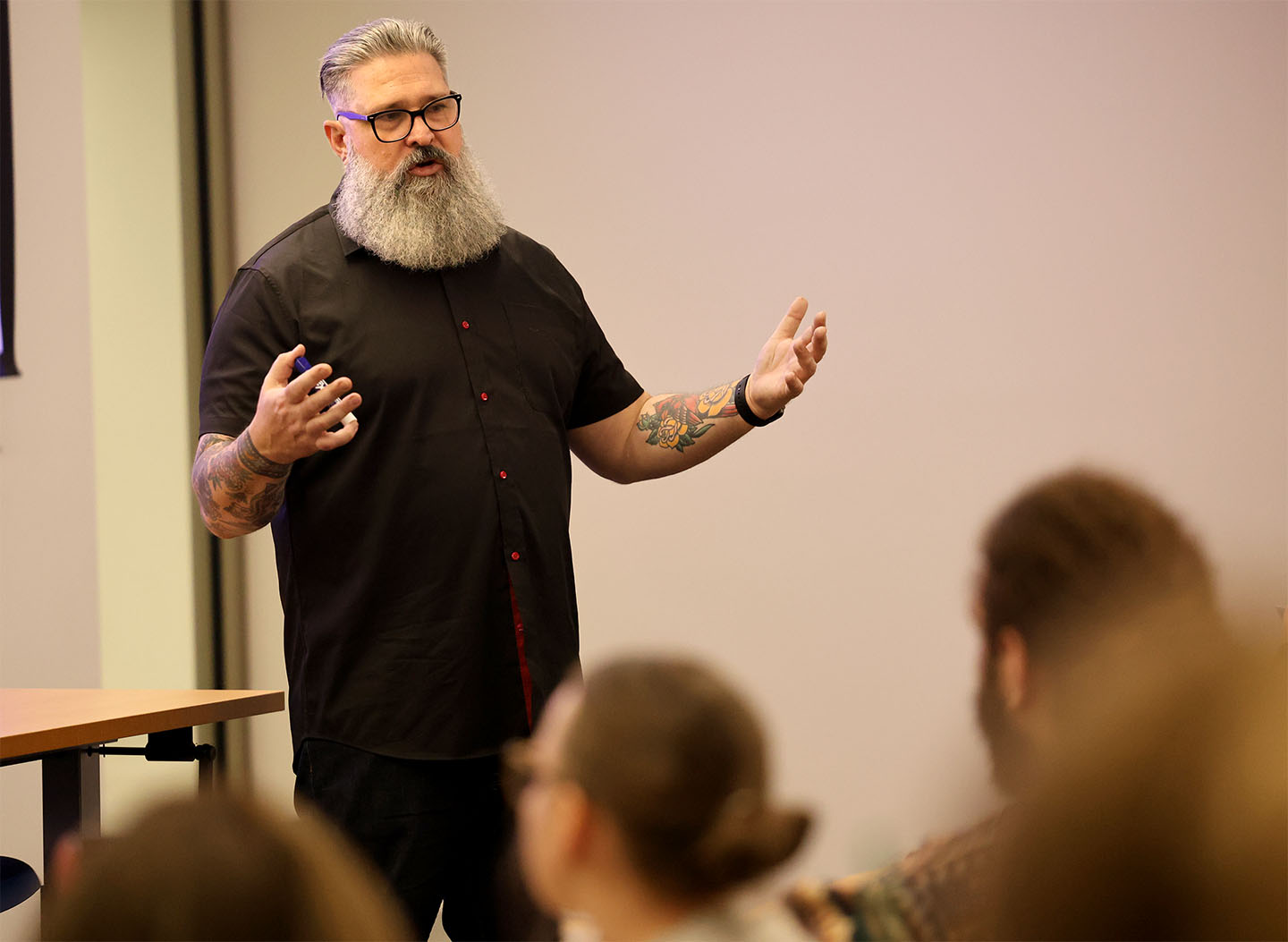 The founder of the new USC Bullying Prevention Center, Chad Rose, teaches his education class in the Science and Technology Building on Feb. 5. Photo by Lacy Latham/The Carolina Reporter
