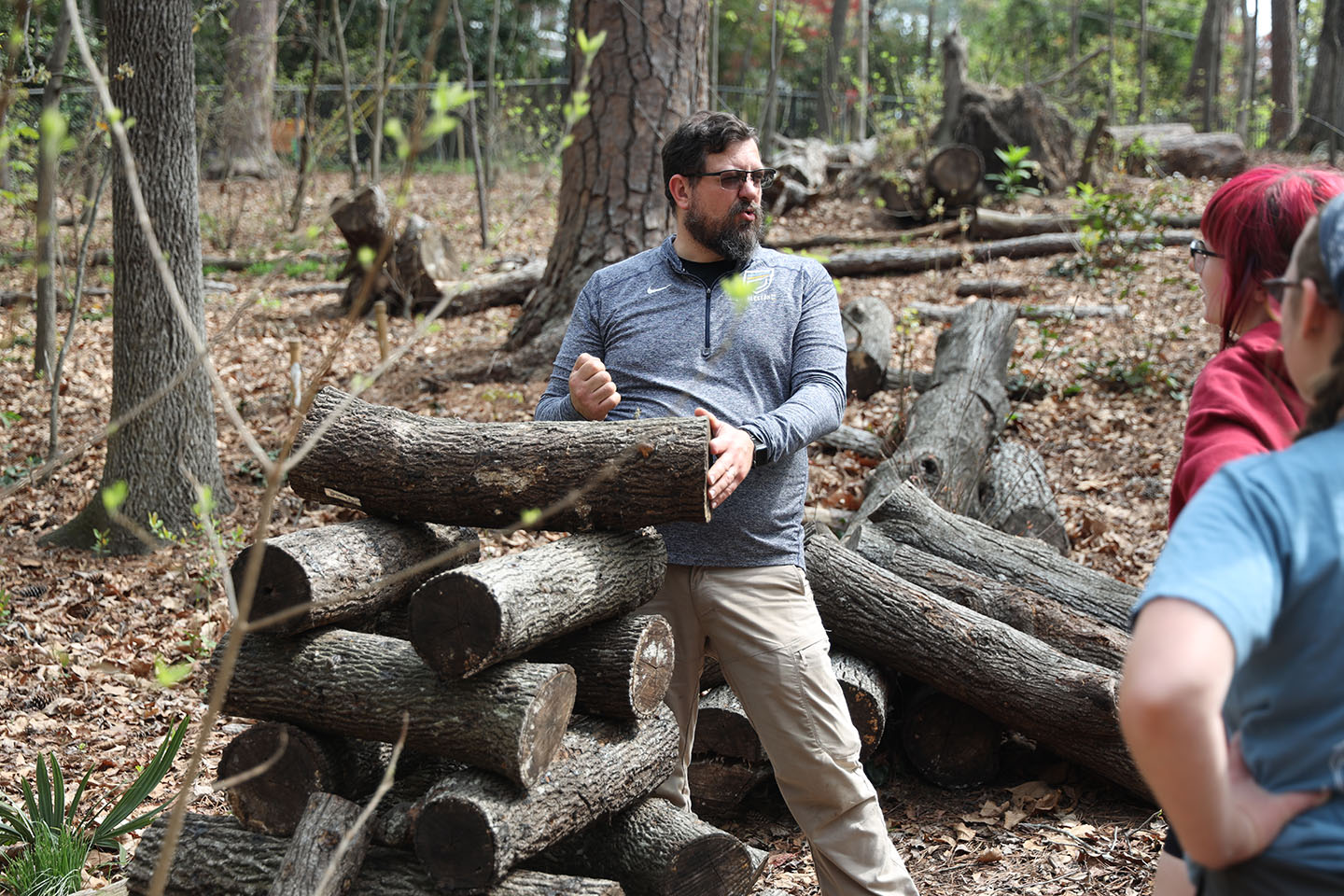 Franklin shows the group wood logs cut from trees that fell during the historic, 2024 inland hurricane. Photo by Sencere Rice/The Carolina Reporter