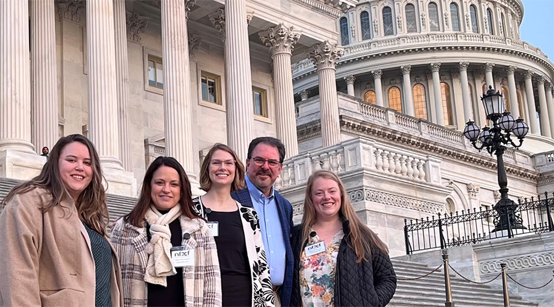 South Carolina representatives, including center researchers and other advocates, champion individuals with fragile X syndrome at Fragile X Advocacy Day in Washington, D.C., on Feb. 27, 2024. Laura Friedman, left, Robin Blackwood, Jessica Klusek, Roger Kuperman and Veronica McLean. Photo courtesy of Carolina Autism and Neurodevelopment Research Center/Carolina Reporter