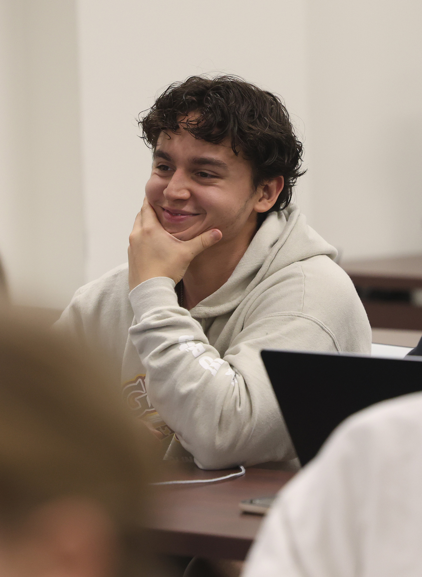 USC student Aaron Fishman listens while classmates solidify their plans for the Downtown @ Sundown concert. Photo by Erin Abdalla/Carolina Reporter