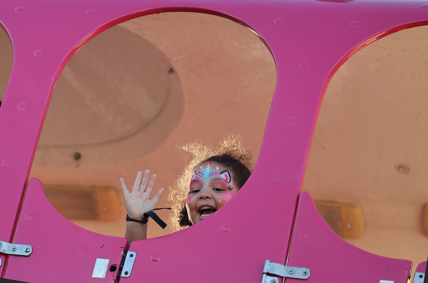Atalia Williams, 4, rides the Crazy Sub all by herself but every time she reaches the top, she waves enthusiasatically to her parents, Joe and Cierra, who wave right back at her from the ground. Photo by Olivia Sisson/Carolina Reporter