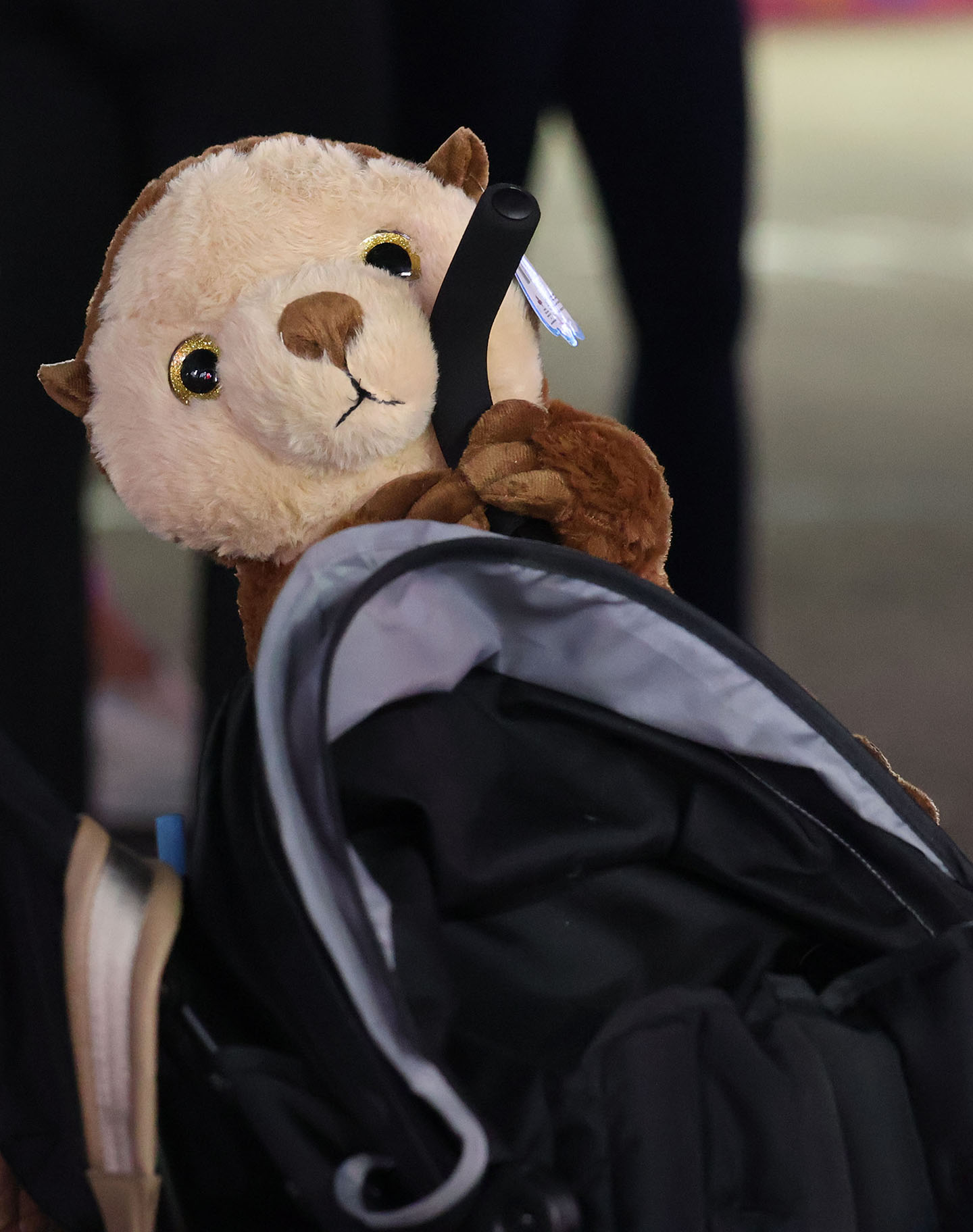 A stuffed sloth won at a carnival game hitches a ride on a stroller at the South Carolina State Fair. Photo by Katie Cannon/Carolina Reporter