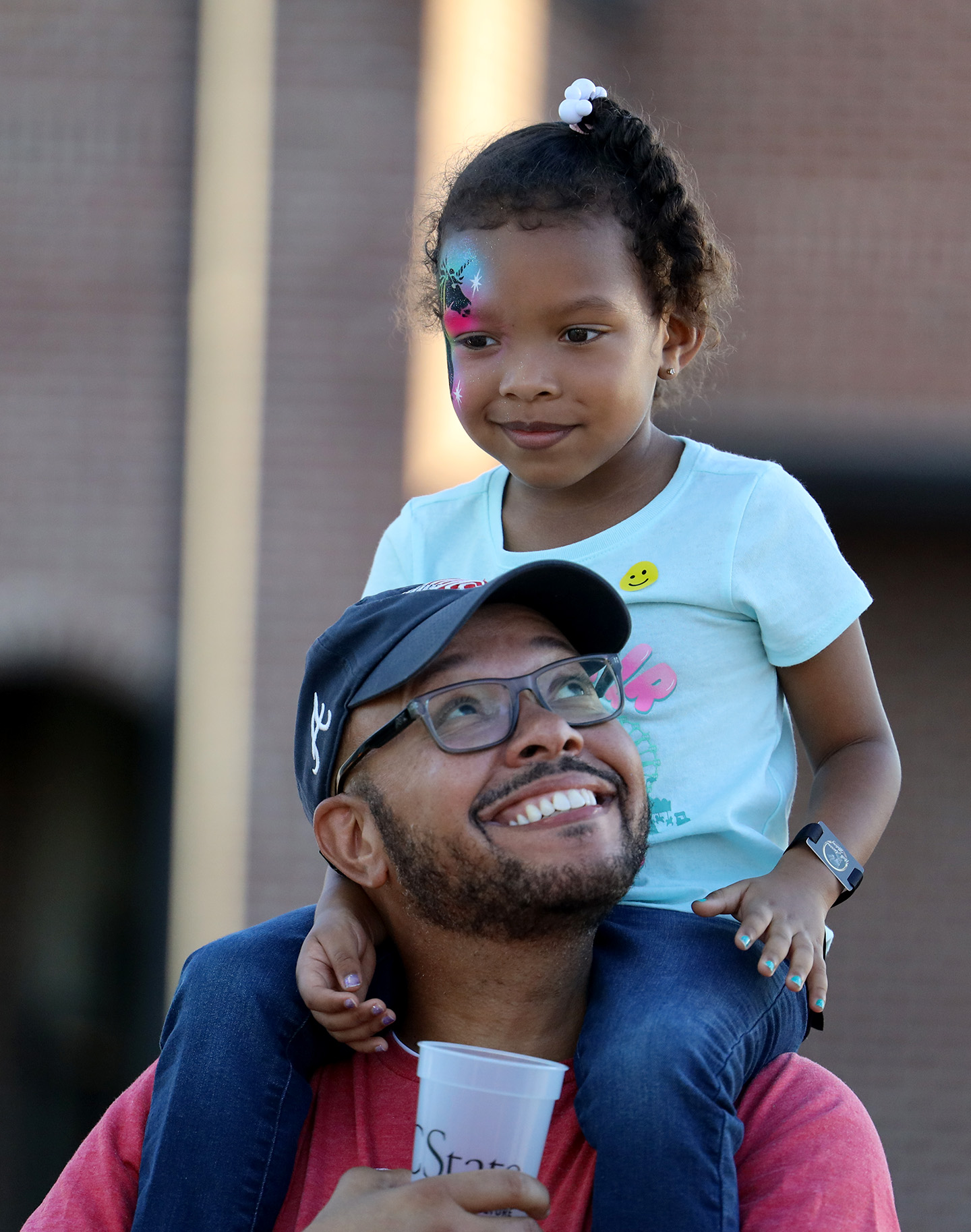 Lewis Thomson is all smiles as his daughter, Madison, 4, rides high on his shoulders during her first trip to the State Fair. Photo by Olivia Sisson/Carolina Reporter