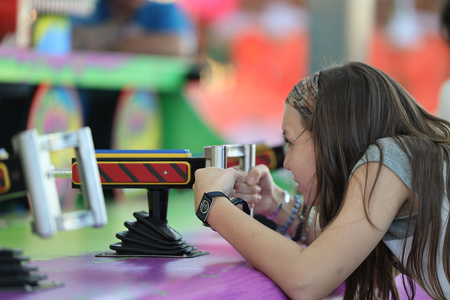 Laney Steele shoots for her mark at the watergun game at the State Fair. Photo by Amelia Gay/Carolina Reporter
